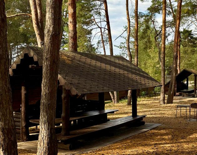 Турбаза «Аркадия» расположена среди густого хвойного леса, где воздух наполнен ароматом сосен и ощущением спокойствия. Удобная и продуманная территория позволяет с одинаковым комфортом отдыхать семьям с детьми, парам и дружным компаниям. Здесь есть собственный пляж с выходом к чистой воде, где можно загорать, купаться или просто наслаждаться природой. Для компаний оборудованы просторные открытые беседки и уютная каминная беседка, которая особенно хороша в вечернее время. На территории предусмотрены мангальные зоны — всё продумано для отдыха на свежем воздухе.