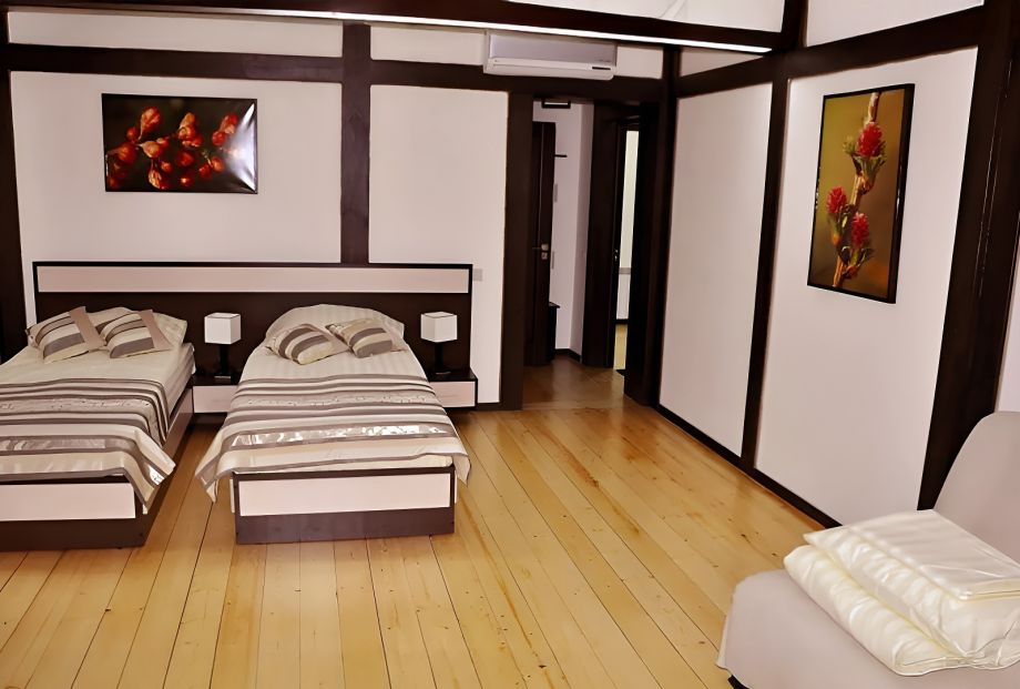 Номер подойдет для компании из двух человек, желающих окунуться в спокойных и тихий отдых, отдохнуть от городской суеты, а так же оздоровиться чистым воздухом.