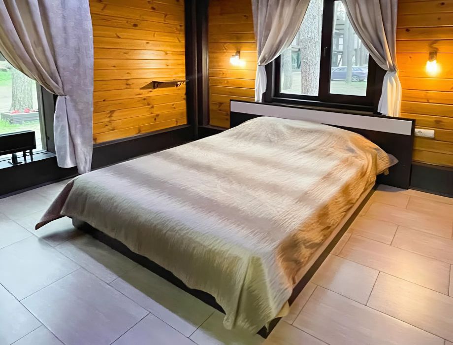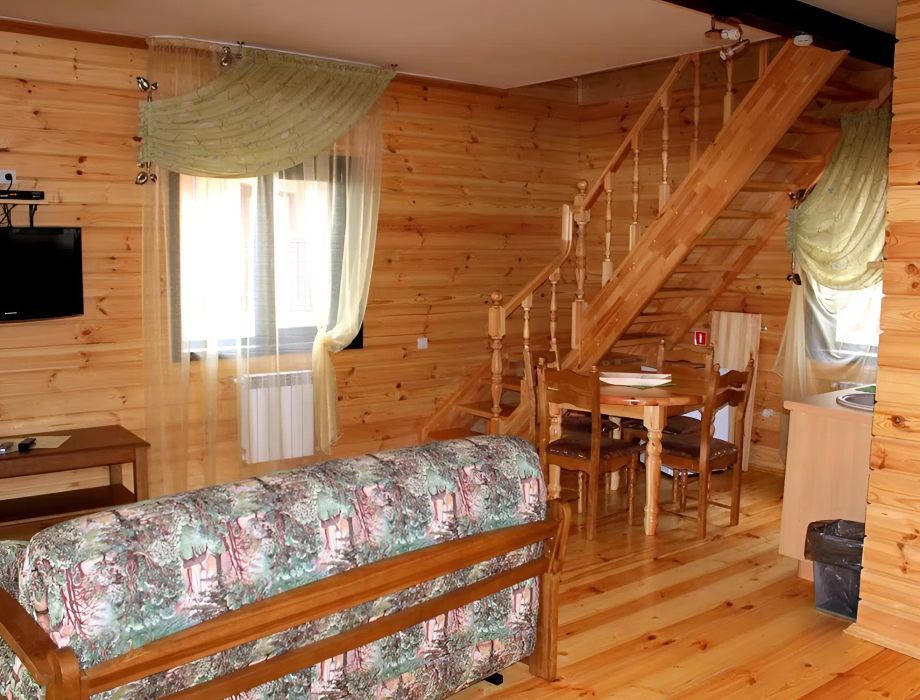Комфортабельные домики на 6 человек идеально подойдут для для отдыха небольшой компании или семьи. Коттедж двухэтажный. Есть удобная обеденная зона. Возле каждого домика есть мангал и стол.